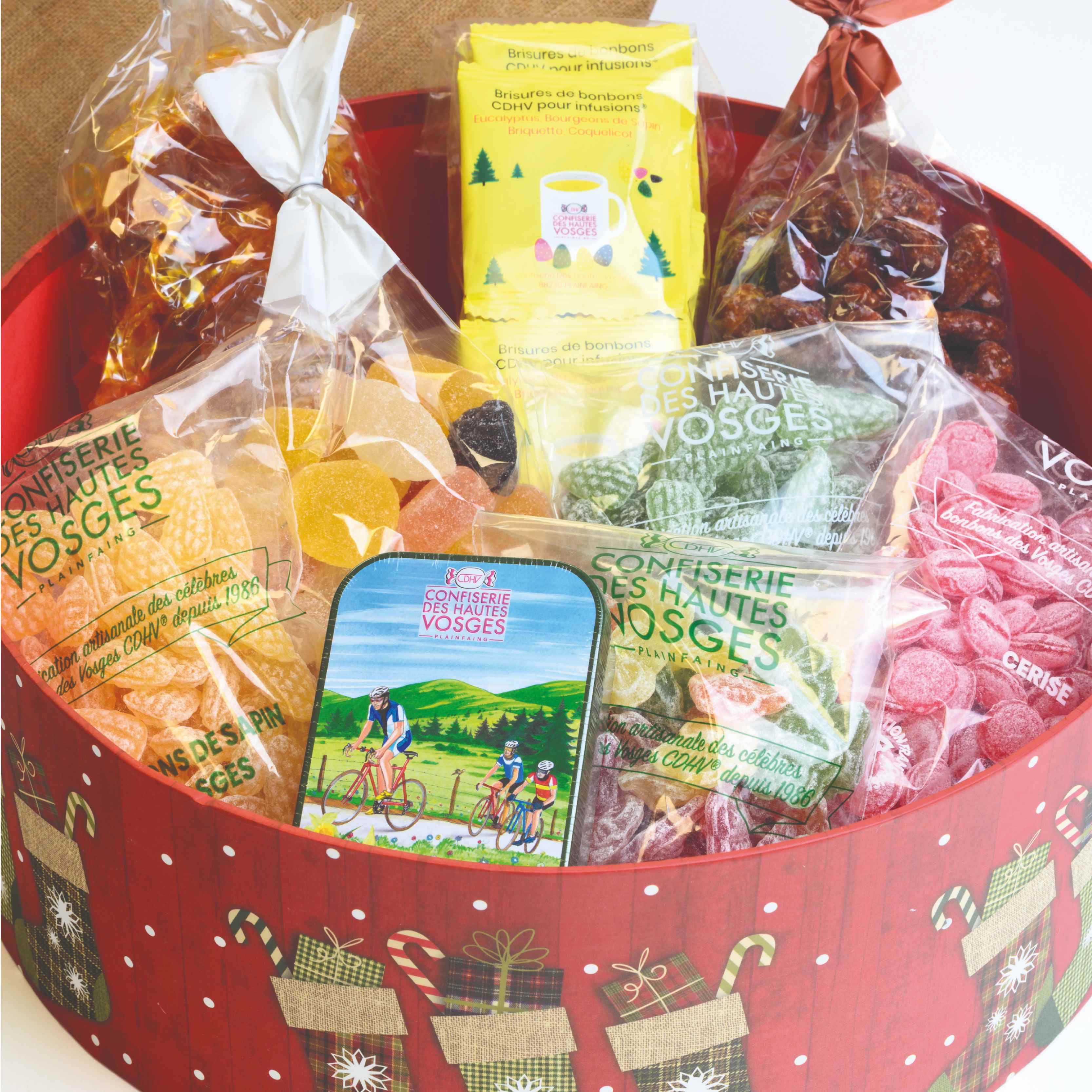 Cette box est la composition idéale pour affronter l’hiver ! La joie, le plaisir et le partage en famille ou entre amis de gourmandises artisanales et vosgiennes! Offrez notre magnifique Méga Box de Noël et faites pétiller les yeux et les papilles de ceux qui la recevront !