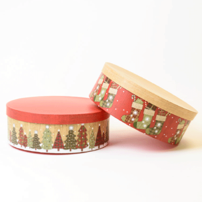 - Une jolie boîte cartonnée ronde décorée de motifs de l'hiver (format 31 x 11)