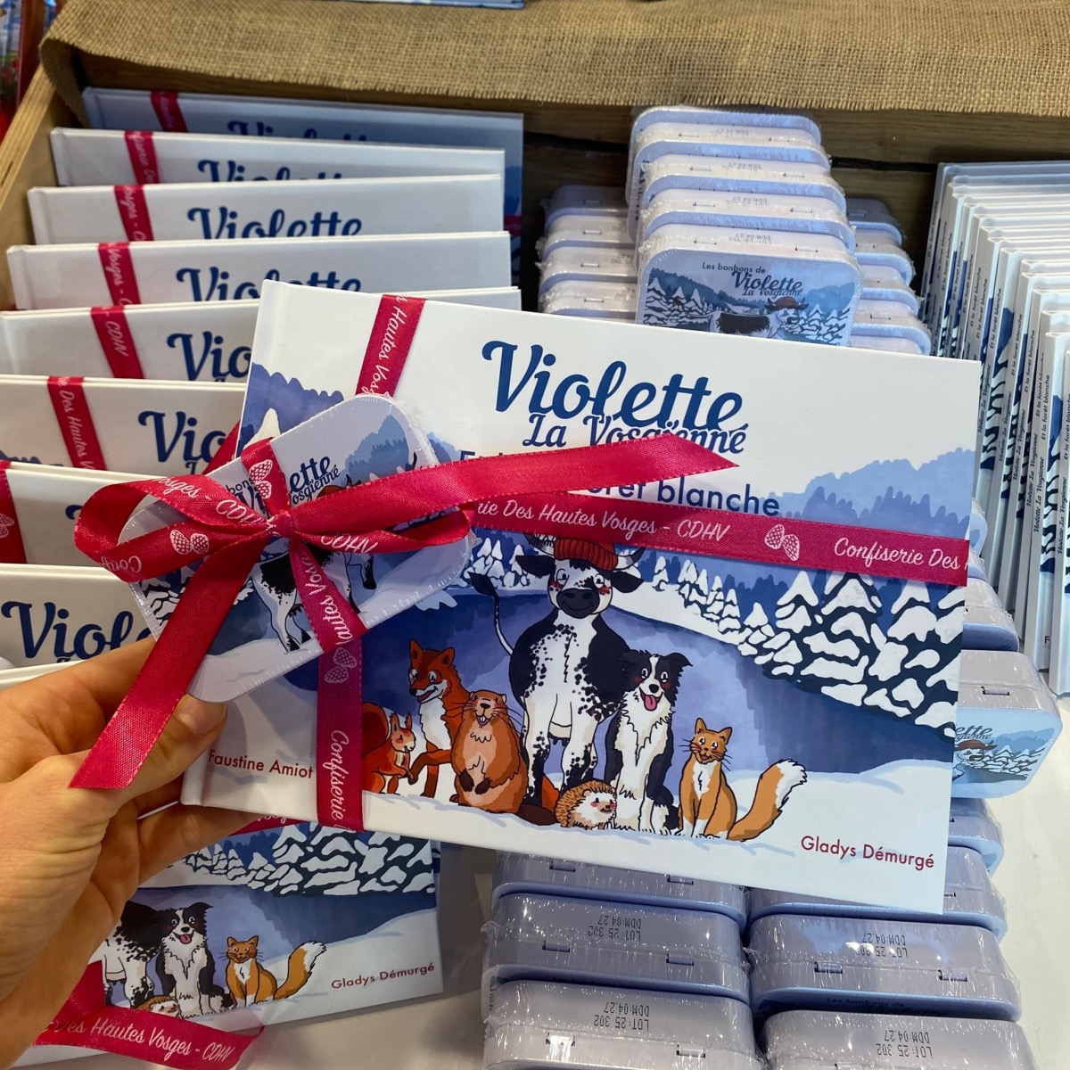 🐮 Découvrez les aventures de Violette la Vosgienne dans ce pack LIVRE + BOÎTE de Bonbons!